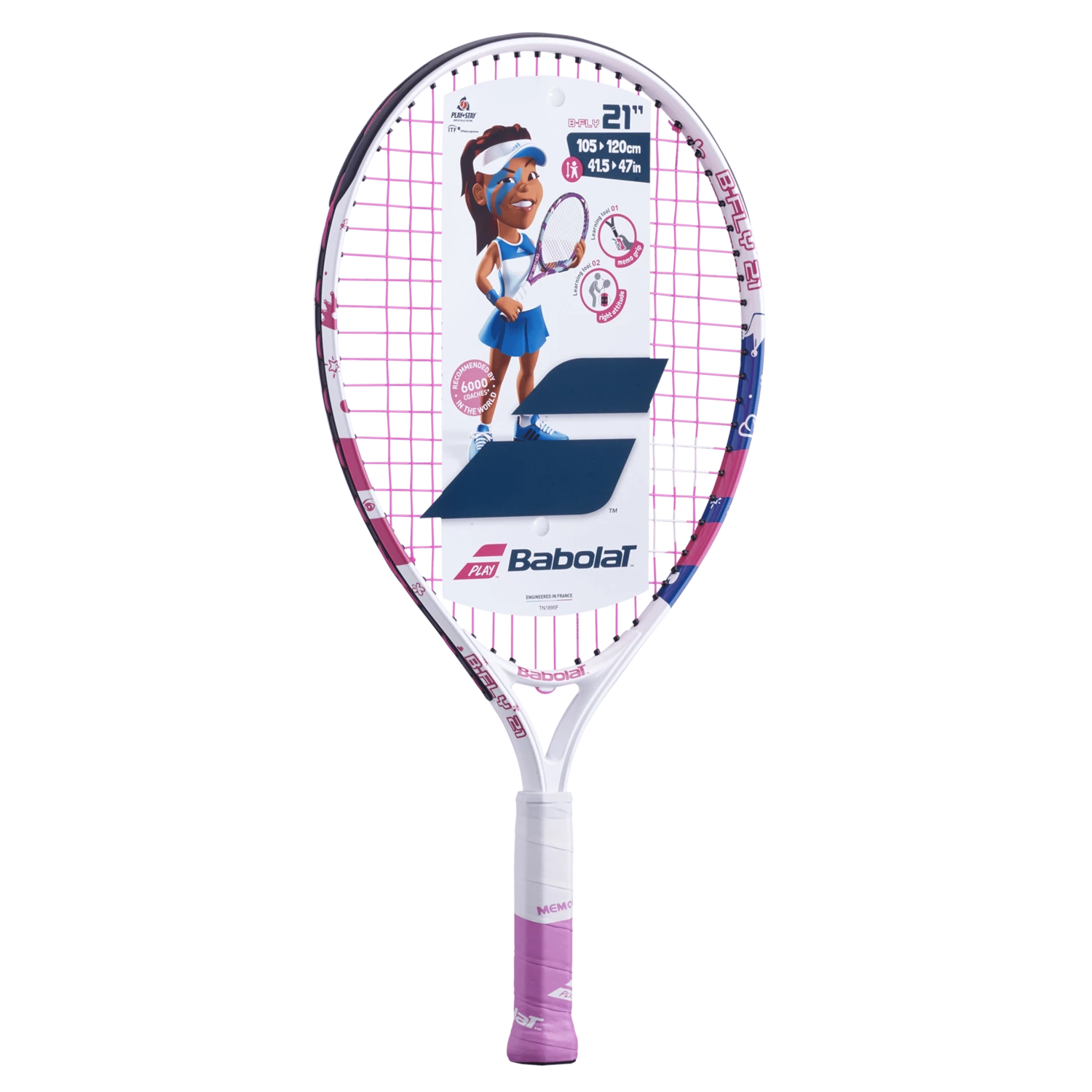 At Babolat, making tennis fun for kids is our mantra. That’s why we created racquets like the B-Fly, to help your kid have fun faster on court, with a cool-looking design they will love. Learning the fundamentals is important too, so we integrated educational tools directly onto the racquet to help your kids master the basics of tennis. It’s no surprise the B-Fly is recommended by 6000 coaches around the world.*